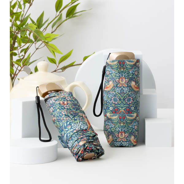 モリス柄 晴雨兼用コンパクト折りたたみ日傘 いちご泥棒
