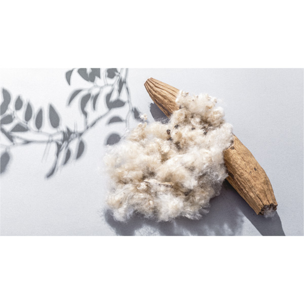 【天然繊維カポック】羽毛に似た性質を持ち、軽くて、吸放湿に優れています。木の伐採を必要としないので、森林保護にもつながります。