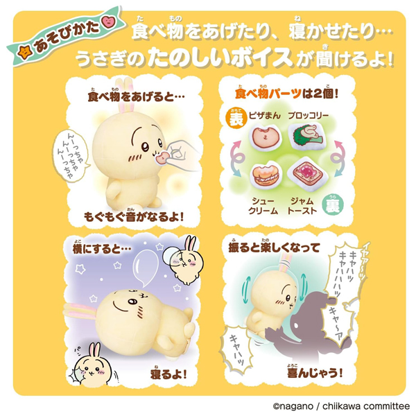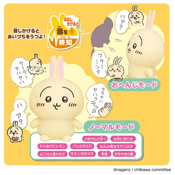 作中で印象的「ヤハ!」セリフが聞ける「大声でおしゃべりモード」や、話しかけるとうさぎが気ままに相づちをうってくれる「おへんじモード」、